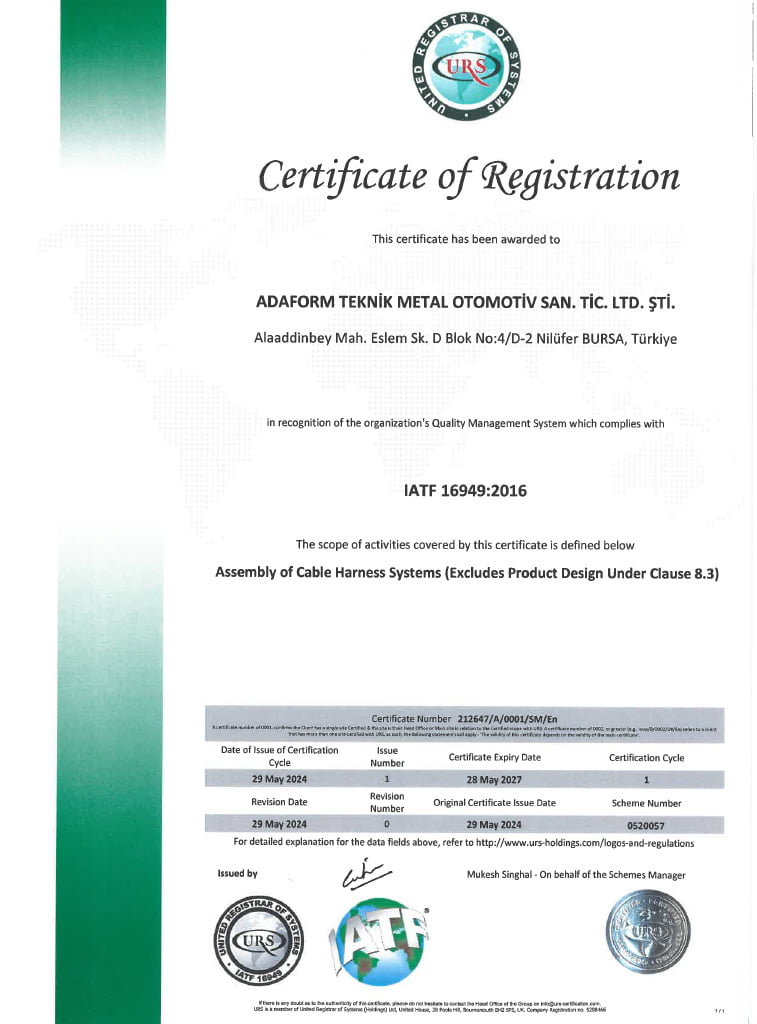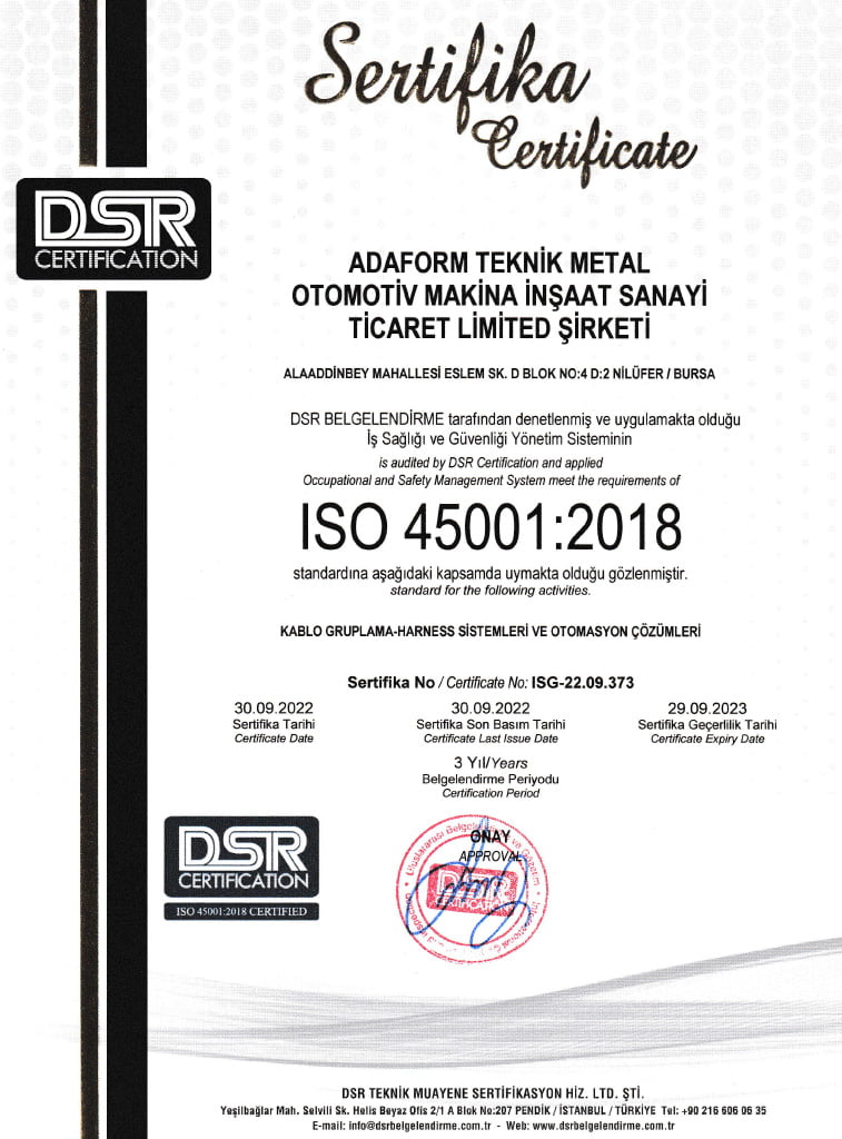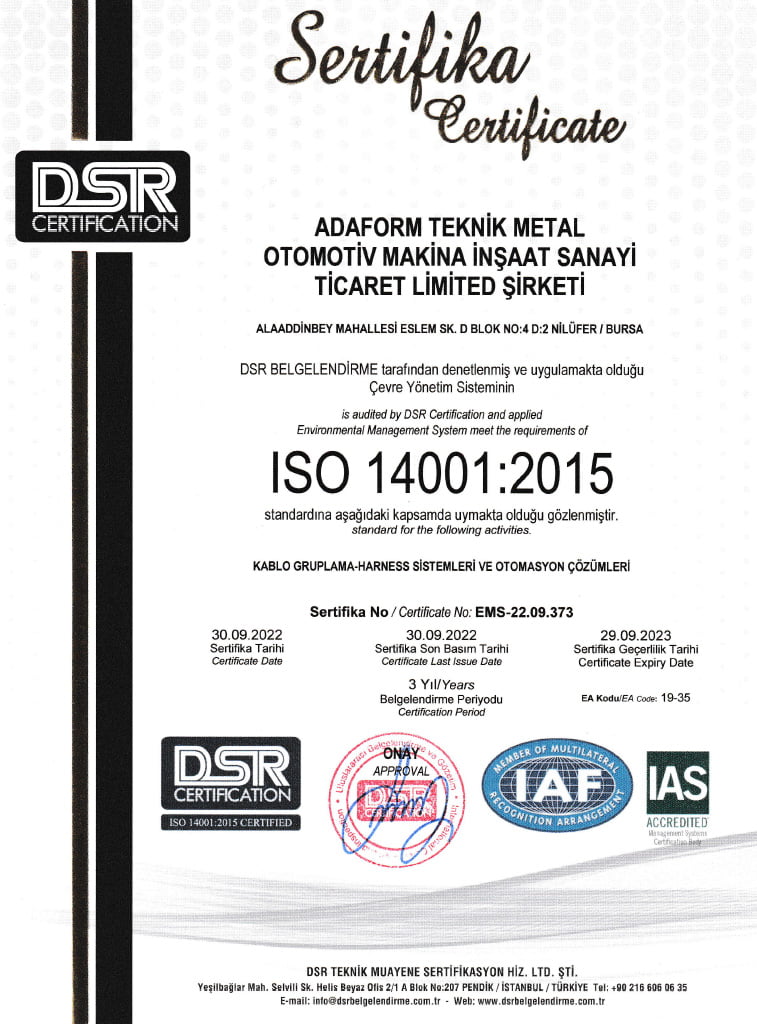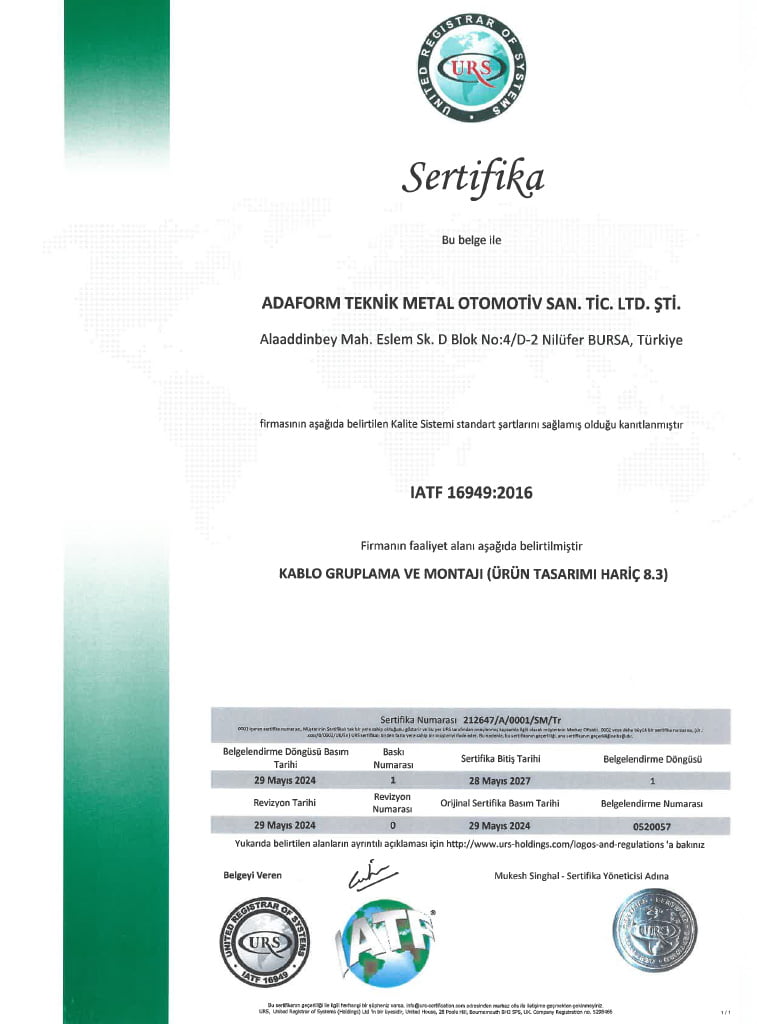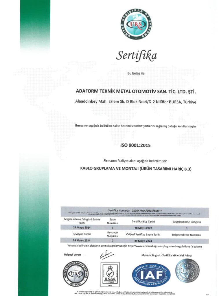 ADAFORM TEKNİK Üst Yönetimi tarafından kalite anlayışımızı ve amaçlarımızı müşterilerimize ve bağlamda belirtilen diğer tüm